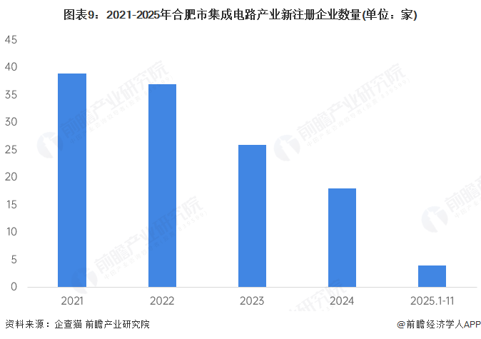 截至2025年11月,合肥市已汇聚集成电路上市企业7家,独角兽企业6家,国家级“专精特新小巨人”企业20家。合肥市集成电路产业企业竞争力十分强劲。